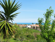 "Michela (PIT230)", 3-rums-lägenhet 110 m2 på 1. våningen, sydostläge. Praktiskt inredd: stort vardags-/sovrum med draperi med 1 bäddsoffa för 2 personer, matbord, sat-TV och radio. Utgång till balkongen. 2 rum, till varje rum hör, 1 dubbelsäng. Utgång till balkongen. Öppet kök (ugn, diskmaskin, 5 gasflammor, brödrost, frys, elektrisk kaffemaskin). Badkar/toalett, dusch/toalett. Gasuppvärmning. Balkong 20 m2. Balkongmöbler. Vacker utsikt på havet och landskapet. Till förfogande: tvättmaskin, hög barnstol, barnsäng. Internet (Trådlös LAN [WLAN] , gratis). 1 husdjur/hund tillåtet.- Kännetecken för boendet