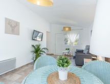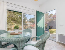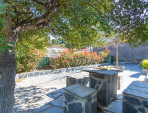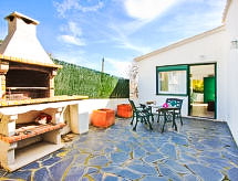 3-rums-hus 76 m2. Praktiskt och komfortabelt inrett: vardags-/matrum med 1 bäddsoffa för 2 personer, öppen spis, matbord, digital-TV och eluppvärmning. Utgång till trädgårdssittplatsen. 1 rum, fönster mot gården med 2 sängar och eluppvärmning. 1 rum, fönster mot gården med 1 fransk säng och eluppvärmning. Stort kök (ugn, diskmaskin, 4 kokplattor - glaskeramikhäll, mikrovågsugn, frys, elektrisk kaffemaskin) med matbord. Dusch/toalett, sep. Toalett. Trädgårdssittplats. Terrassmöbler, utegrill. Till förfogande: tvättmaskin, torktumlare, strykjärn. Notera: 1 husdjur/hund tillåtet. TV bara ES. HUTG002526- Utrustning