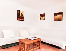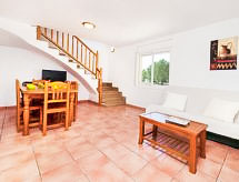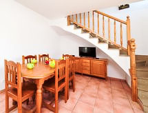 Urb. Tres Cales 4 km från L'Ametlla de Mar: Mysig villa "Mimosa II", med 2 våningar. Utanför orten, 4.8 km från centrumet av L'Ametlla de Mar, lugnt, soligt läge, 1.1 km från havet, 1.1 km från stranden. För privat bruk: tomt i naturtillstånd (inhägnad), pool (8 x 4 m, 80 - 190 cm djup, tillgång säsongsbunden: 01.Apr. - 31.Okt.) med innertrappor. Terrass, trädgårdsmöbler, utegrill, Underhållning av poolen av ägaren/trädgårdsmästaren parkering vid huset. Livsmedelsaffär, stormarknad, restaurang, bar 700 m, järnvägsstation 4.8 km, sandstrand 1.1 km. Närbelägna sevärdheter: Parque Portaventura 48 km, parque Aquopolis 51 km, parque natura del Delta del Ebro 35 km, Tarragona 57 km, Reus 48 km, Barcelona 153 km. Notera: fordon rekommenderas. Tonårsgrupper endast på förfrågan.Interior