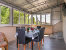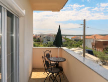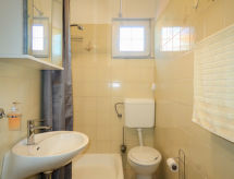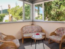 3-rums-lägenhet 60 m2 på 1. våningen. Objekt passande för 6 vuxna + 1 barn. Delvis renoverad år 2019, komfortabelt inredd: 1 rum med 1 dubbelsäng (2 x 90 cm, längd 200 cm), 1 hopfällbar säng, dusch/toalett, sat-TV och luftkonditionering. Utgång till balkongen. 1 rum med 1 dubbelsäng (2 x 90 cm, längd 200 cm), dusch/toalett, sat-TV och luftkonditionering. 1 rum med 1 dubbelsäng (2 x 90 cm, längd 200 cm), dusch/toalett, sat-TV och luftkonditionering. Utgång till balkongen. Matrum med sat-TV. Utgång till verandan. Öppet kök (ugn, diskmaskin, 4 kokplattor - glaskeramikhäll, brödrost, vattenkokare, mikrovågsugn, frys, elektrisk kaffemaskin). 2 balkonger 5 m2, gräsmatta 10 m2. Terrassmöbler, balkongmöbler, utegrill. Begränsad utsikt på havet. Till förfogande: myggnät, hög barnstol, barnsäng (extra). Internet (Trådlös LAN [WLAN] , gratis). Notera: rökfritt hus. 1 husdjur/hund tillåtet. Brandsläckare.- Utrustning