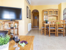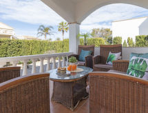 Riumar 10 km från Deltebre: Modernt, vackert hus "Miramar". Lugnt, soligt läge, 60 m från havet, 60 m från stranden, gata att korsa. För privat bruk: tomt (inhägnad), pool i form av en njure (tillgång säsongsbunden: 01.Jan. - 31.Dec.) med innertrappor. Utedusch, pergola, parkering vid huset, privat garage. Affär, livsmedelsaffär, restaurang, bar 300 m. Tonårsgrupper endast på förfrågan.Interior
