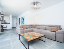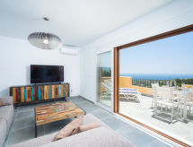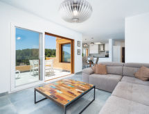 "Miramar", 3-rums-bungalow 75 m2. Objekt passande för 2 vuxna + 2 barn. Renoverad år 2018: stort vardags-/matrum med sat-TV, digital-TV och luftkonditionering. Utgång till terrassen. Öppet kök (ugn, diskmaskin, 3 kokplattor - glaskeramikhäll, mikrovågsugn, frys, elektrisk kaffemaskin). Utgång till terrassen. Ingen uppvärmningsmöjlighet. Nedre våning: 1 rum med 2 sängar (90 cm, längd 200 cm), luftkonditionering. 1 litet rum med 1 bäddsoffa för 2 personer (150 cm, längd 200 cm). Badkar/dusch/bidé/toalett. Liten trädgårdssittplats. Terrassmöbler. Mycket vacker vidsträckt utsikt på havet. Till förfogande: tvättmaskin, strykjärn, hårtork. Notera: lämpligt för barnfamiljer. TV bara ES, DE, FR. VT-444772-A- Aktiviteter i närheten