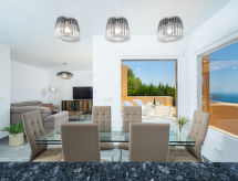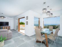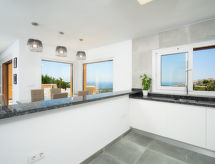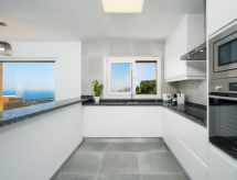 Modern bungalow "Miramar", med 2 våningar, renoverad år 2018. I ortsdelen Benimeit 5 km från centrumet av Moraira, lugnt, soligt läge på en kulle, 3.5 km från havet, 5 km från stranden. För gemensamt bruk: välskött trädgård, pool oregelbundet formad (90 - 210 cm djup, tillgång säsongsbunden: 01.Jan. - 31.Dec.). I huset: tvättmaskin. Parkering vid huset. Affär 5 km, stormarknad 4 km, restaurang 3.5 km, sandstrand "Playa L'Ampolla" 5 km. Notera: fordon rekommenderas.Interior
