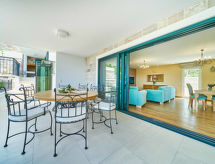 8-rums-villa 280 m2 med 2 våningar. Rymlig, vackert inredd: vardags-/matrum med öppen spis och sat-TV (flatscreen TV), luftkonditionering. Utgång till terrassen. 2 rum, till varje rum hör, 1 fransk säng (180 cm, längd 200 cm), dusch/toalett och sat-TV (flatscreen TV). 1 rum med 2 sängar (90 cm, längd 200 cm), dusch/toalett och sat-TV (flatscreen TV). Öppet kök (ugn, diskmaskin, 4 kokplattor - glaskeramikhäll, brödrost, vattenkokare, mikrovågsugn, frys, elektrisk kaffemaskin). Sep. Toalett. Övre våning: vardags-/matrum med öppen spis och sat-TV (flatscreen TV). Utgång till terrassen, till swimmingpoolen. 2 rum, till varje rum hör, 1 fransk säng (180 cm, längd 200 cm), dusch/toalett och sat-TV (flatscreen TV). 1 rum med 2 sängar (90 cm, längd 200 cm), dusch/toalett och sat-TV (flatscreen TV). Öppet kök (ugn, diskmaskin, 4 kokplattor - glaskeramikhäll, brödrost, vattenkokare, mikrovågsugn, frys, elektrisk kaffemaskin). Sep. Toalett. Golvvärme. Balkong 10 m2, 2 terrasser 20 m2, täckt. Terrassmöbler, vilstolar. Vacker utsikt på havet. Till förfogande: kassaskåp, strykjärn, hög barnstol, barnsäng, hårtork. Internet (Trådlös LAN [WLAN] , gratis). Notera: brandvarnare, brandsläckare.- Utrustning