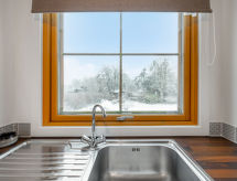 2-rums-chalet. Rymlig, smakfullt och mysigt inrett: vardags-/matrum med matbord och TV (flatscreen TV). 1 dubbelrum med 1 dubbelsäng. Kokvrå (2 kokplattor, brödrost, vattenkokare, grill, kombinerad mikrovågsugn). Dusch/toalett. Uppvärmning. Terrassmöbler. Till förfogande: hög barnstol, barnsäng för barn under 2 år. Internet (Trådlös LAN [WLAN] , gratis). Notera: inte passande för små barn. TV bara EN. Privat entré, privat entré.- Utrustning
