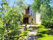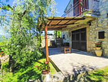 2-rums-hus 55 m2 med 2 våningar, på bottenvåningen. Rustikt och mysigt inrett: kombinerat kök och vardagsrum (4 kokplattor, ugn, diskmaskin, vattenkokare, mikrovågsugn, elektrisk kaffemaskin, Kapslar till kaffemaskin (Nespresso)) med matbord, öppen spis och sat-TV. Utgång till terrassen. Dusch/bidé/toalett. Eluppvärmning. Övre våning: (spiraltrappa) 1 stort rum med 1 säng, 1 dubbelsäng och luftkonditionering. Utgång till balkongen. Terrass, stor trädgård, berså. Terrassmöbler, utegrill, förråd. Till förfogande: tvättmaskin, ved (extra). Internet (Trådlös LAN [WLAN] , extra). Parkeringsplats (inhägnad) vid huset. 1 husdjur/hund tillåtet.- Utrustning
