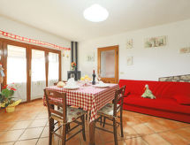 Rustikt lantgård "Montecalvo", byggnadsår 1820, renoverat. 3 km från centrumet av Roccastrada, 30 km från centrumet av Follonica, 45 km från centrumet av Siena, belägen vid en väg, i det gröna. För privat bruk: trädgård 1'500 m2 (inhägnad). Utedusch, berså, terrass, trädgårdsmöbler, utegrill, barnlekplats (gunga). I huset: Trådlös LAN [WLAN] (allt extra), tvättmaskin. Städning möjligt (extra). Tillfart ända fram till till huset. Parkering på tomten. Affär 3 km, restaurang 100 m, busshållplats 3 km, järnvägsstation "Roccastrada Scalo" 7 km. Golfbana 30 km, tennis 3 km, ridstall 30 km.Interior