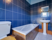 4-rums-stuga med 2 våningar. Rymlig och ljus, komfortabelt och smakfullt: vardagsrum med TV, flatscreen TV och DVD. Kök (4 kokplattor, ugn, diskmaskin, mikrovågsugn, frys) med matbord. Badkar/dusch/toalett. Övre våning: 1 dubbelrum med 1 dubbelsäng, dusch/toalett, TV och DVD. 1 rum med 1 dubbelsäng. 1 rum med 2 sängar. Badkar/dusch/toalett. Uppvärmning. Terrassmöbler. Härlig utsikt på landskapet. Till förfogande: tvättmaskin, hög barnstol, barnsäng för barn under 2 år. Internet (Trådlös LAN [WLAN] , gratis). Notera: rökfritt hus.- Utrustning