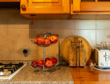 2-rums-hus 38 m2. Objekt passande för 2 vuxna + 2 barn. Praktiskt och rustikt inrett: vardags-/matrum med öppen spis och TV. Utgång till terrassen. 1 rum med 1 x 2 våningssängar, 1 dubbelsäng. Öppet kök (ugn, Gasspis, 4 gasflammor, brödrost, mikrovågsugn, elektrisk kaffemaskin) med matbord. Utgång till terrassen. Dusch/toalett. Gasuppvärmning. Terrass, trädgårdssittplats. Terrassmöbler, utegrill (flyttbar), vilstolar (2). Härlig panoramautsikt på sjön och bergen. 1 husdjur/hund tillåtet. 013178-AGR-00001- Utrustning