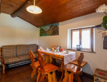 Liten rustico "Nadia", 1'115 meter över havsytan. Ovanför Peglio, i den lilla byn Bodone 12 km från centrumet av Gravedona, 60 km från centrumet av Como, 64 km från centrumet av Lecco, upphöjt läge i en sluttning, 12 km från sjön, i det gröna. För privat bruk: tomt med äng. 5 km lång smal tillfart (bergsväg). Trappor till huset. Parkering vid huset. Affär 5 km, stormarknad 13 km, restaurang 3.6 km, järnvägsstation "Como" 6 km, grusstrand "Lido di Gravedona" 12 km, utomhusbad 12 km. Marina 12 km, golfbana (18 hål) 39 km. Närbelägna sevärdheter: Agriturismo Zertin with pool 3.6 km. Välkända sjöar nås enkelt: Comer See 12 km. Vandringsområden Sella di Paregna, Rifugio Motta, Monte Fiorita.Interior