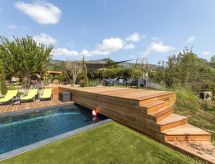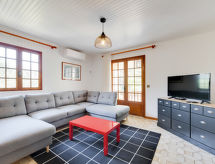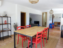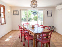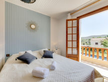 5-rums-villa 280 m2 med 2 våningar. Objekt passande för 6 vuxna + 2 barn. Komfortabelt och vackert inredd: ingång. Salong med öppen spis och TV (flatscreen TV). Utgång till terrassen. 1 rum med 1 dubbelsäng (160 cm, längd 200 cm), 1 hopfällbar säng och dusch/toalett. Utgång till terrassen. 1 rum med 1 fransk säng (160 cm, längd 200 cm), dusch. Utgång till balkongen. 1 rum med 1 fransk säng (160 cm, längd 200 cm). Utgång till balkongen, mot söder. Badkar, sep. Toalett. Luftkonditionering. Nedre våning: vardags-/matrum med TV (flatscreen TV). Utgång till swimmingpoolen. 1 rum med 1 fransk säng (140 cm, längd 200 cm), dusch. Kök (4 kokplattor, ugn, diskmaskin, brödrost, vattenkokare, mikrovågsugn, frys, elektrisk kaffemaskin, Kapslar till kaffemaskin (Senseo)) med bar. Utgång till trädgården. Sep. Toalett. Luftkonditionering. Terrass 30 m2. Terrassmöbler, utegrill, vilstolar (8). Till förfogande: tvättmaskin, barnsäng. Internet (Trådlös LAN [WLAN] , gratis). Notera: rökfri lägenhet. Brandvarnare.- Kännetecken för boendet