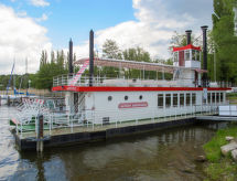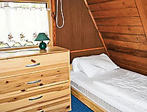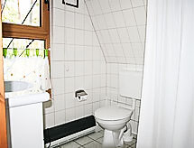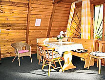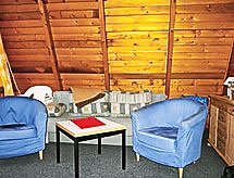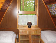 3-rums-hus 65 m2 med 2 våningar, på bottenvåningen. Sluttande tak: vardags-/matrum med 1 bäddsoffa, kabel-TV och stereoanläggning. Utgång till terrassen. Litet kök (4 kokplattor, ugn, mikrovågsugn, elektrisk kaffemaskin). Dusch/toalett. Övre våning: (brant trappa) 1 rum med snedtak med 2 sängar. 1 dubbelrum med snedtak. Eluppvärmning. Terrass täckt. Sittgrupp. Till förfogande: telefon (extra). Internet (Trådlös LAN [WLAN] , gratis). Notera: rökfritt hus. Brandvarnare.- Utrustning
