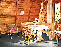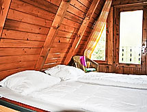3-rums-hus 65 m2 med 2 våningar, på bottenvåningen. Sluttande tak: vardags-/matrum med 1 bäddsoffa för 2 personer, kabel-TV och stereoanläggning. Utgång till terrassen. Litet kök (4 kokplattor, ugn, mikrovågsugn, elektrisk kaffemaskin). Dusch/toalett. Övre våning: (brant trappa) 1 rum med snedtak med 2 sängar. 1 dubbelrum med snedtak. Eluppvärmning. Terrass täckt. Sittgrupp. Till förfogande: telefon (extra). Internet (Trådlös LAN [WLAN] , gratis). Notera: rökfritt hus. Brandvarnare.- Utrustning