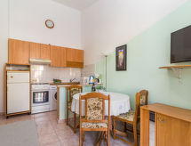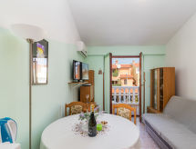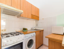 2-rums-lägenhet 40 m2 på 1. våningen, sydläge. Vardags-/matrum 20 m2 med sat-TV och luftkonditionering. Utgång till balkongen. 1 rum 15 m2 med 1 fransk säng (160 cm, längd 200 cm). Öppet kök (1 kokplatta, ugn, 3 gasflammor, brödrost, vattenkokare, mikrovågsugn, frys, elektrisk kaffemaskin). Dusch/toalett. Balkong 8 m2. Balkongmöbler. Till förfogande: tvättmaskin. Internet (Trådlös LAN [WLAN] , gratis). Notera: rökfri lägenhet. Privat entré, privat entré.- Utrustning