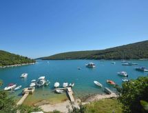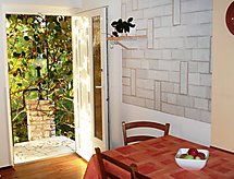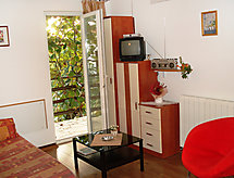 2-familjshus "Novi". Soligt läge, 2.5 km från havet, 2.5 km från stranden. För gemensamt bruk: tomt 500 m2 (inhägnad) med planteringar och blommor. Pergola, utegrill. Tillfart ända fram till till huset. Parkering på 50 m avstånd. Affär, restaurang 200 m, grusstrand 2.5 km, strand vid klippor 2.5 km, dykcenter 2.5 km, simhall 5 km. Tennis 5 km, ridstall 6 km, sportcentrum 5 km, vandringsleder från huset 3 km, cykelled 3 km.Interior