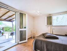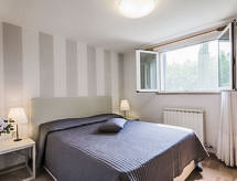 "Olivo", 3-rums-lägenhet 64 m2, på bottenvåningen. Komfortabelt inredd: vardagsrum med 1 bäddsoffa, sat-TV och flatscreen TV. 1 dubbelrum. 1 dubbelrum med dusch/bidé/toalett. Utgång till trädgårdssittplatsen. Kombinerat kök och vardagsrum (4 kokplattor, miniugn, brödrost, vattenkokare, mikrovågsugn, frys, elektrisk kaffemaskin) med matbord. Utgång till trädgårdssittplatsen. Dusch/bidé/toalett. Uppvärmning (extra). Trädgårdssittplats 12 m2, täckt, trädgårdssittplats 16 m2, täckt. Terrassmöbler, utegrill. Till förfogande: myggnät, hög barnstol, barnsäng för barn under 2 år. Internet (Trådlös LAN [WLAN] , gratis). Notera: 1 husdjur/hund tillåtet. Privat entré, privat entré.- Utrustning