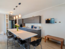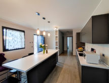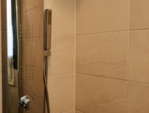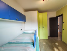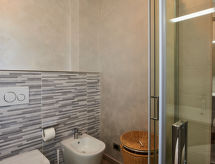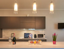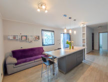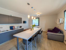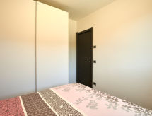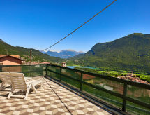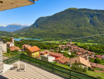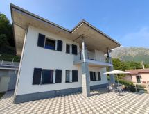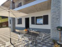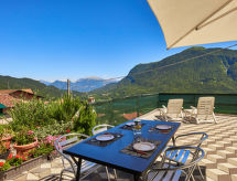 3-rums-lägenhet 70 m2, på bottenvåningen. Modernt och stiligt inredd: vardags-/matrum med TV. Utgång till terrassen. 1 dubbelrum. 1 rum med 1 x 2 våningssängar. Öppet kök (ugn, diskmaskin, 4 Induktionshäll, mikrovågsugn, frys, elektrisk kaffemaskin). Utgång till terrassen. Dusch/bidé/toalett, massage-dusch. Gasuppvärmning, golvvärme. Naturstensgolv. Stor terrass 100 m2 täckt. Terrassmöbler, vilstolar (2). Härlig panoramautsikt på sjön, bergen och dalen. Till förfogande: hög barnstol, barnsäng för barn under 2 år. Internet (Trådlös LAN [WLAN] , gratis). Parkeringsplats (2 Bilar). Notera: rökfri lägenhet. Privat entré, privat entré. CIR: 013077-LNI-00001- Utrustning