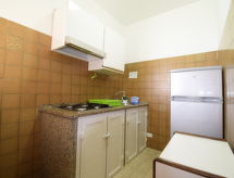 2-rums-lägenhet 40 m2. Enkelt och praktiskt inredd: vardags-/matrum med 1 bäddsoffa, 1 utdragbar säng och TV (flatscreen TV), luftkonditionering. Utgång till terrassen. 1 dubbelrum med fläkt. Kokvrå (4 kokplattor, frys). Dusch/bidé/toalett. Vattenberedare (50 liter). Terrass 5 m2, täckt. Balkongmöbler. Utsikt på havet. Till förfogande: hårtork. Internet (Trådlös LAN [WLAN] , gratis).- Kännetecken för boendet