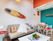 "Parc d'hiver", 2-rums-lägenhet i två våningar 25 m2 på 1. våningen. Enkelt inredd: vardagsrum med 1 bäddsoffa (120 cm, längd 190 cm), TV (flatscreen TV), luftkonditionering. Utgång till terrassen. Dusch/toalett. Övre våning: (brant trappa) galleri med snedtak med 1 fransk säng (140 cm, längd 190 cm). Terrass 10 m2, sydläge och västläge. Terrassmöbler. Begränsad utsikt på kanalen. Till förfogande: tvättmaskin. Parkeringsplats nr 38. Notera: max 1 husdjur/hund tillåtet. Brandvarnare. Annonsering av en privatperson enligt artikel 155, IV, CGI.- Kännetecken för boendet