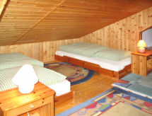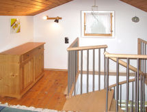 6-rums-hus 100 m2 med 3 våningar. Objekt passande för 6 vuxna + 2 barn. Enkelt inrett: vardagsrum med sat-TV. Matrum. 1 rum med 1 dubbelsäng. Litet, öppet kök (4 kokplattor, ugn, diskmaskin, brödrost, vattenkokare, elektrisk kaffemaskin). Dusch, sep. Toalett. Nedre våning: 2 rum, till varje rum hör, 1 fransk säng. Dusch/toalett. Takvåning: (spiraltrappa) vardags-/sovrum med snedtak, takhöjd 110 - 185 cm med 2 sängar. Uppvärmning. Trägolv, parkettgolv, heltäckningsmatta. Trädgårdssittplats. Utegrill. Vacker utsikt på landskapet. Till förfogande: hög barnstol, barnsäng. Internet (Trådlös LAN [WLAN] , gratis). Notera: rökfritt hus. Brandvarnare, brandsläckare.- Utrustning