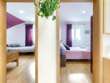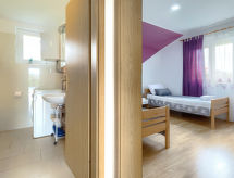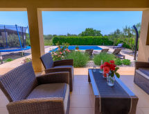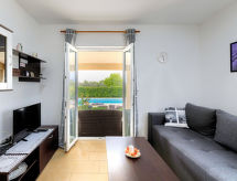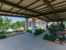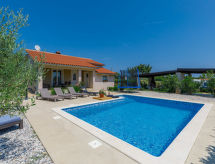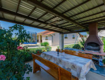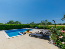 Enfamiljshus "Paula (PUL488)". I den lilla byn Šikići 4 km från centrumet av Pula, 5 km från havet. För privat bruk: tomt 700 m2 (inhägnad), trädgård, pool (6 x 4 m, 120 cm djup, tillgång säsongsbunden: 01.Maj. - 01.Okt.) med innertrappor. Utedusch, badminton, terrass, trädgårdsmöbler, utegrill (gunga), Underhållning av poolen av ägaren/trädgårdsmästaren. I huset: internetanslutning, trampolin, tvättmaskin. Tillfart ända fram till till huset (150 m naturväg). Parkering på tomten. Affär 1 km, stormarknad 1 km, restaurang 300 m, grusstrand 5 km, strand vid klippor 5 km.Interior