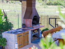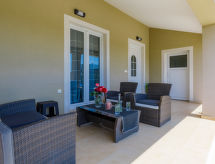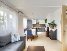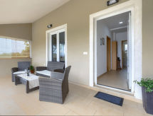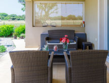 3-rums-hus 90 m2. Vardags-/matrum med 1 bäddsoffa för 2 personer (130 cm), sat-TV (flatscreen TV), luftkonditionering. Utgång till terrassen. 1 rum med 1 fransk säng (160 cm). 1 rum med 2 sängar. Öppet kök (ugn, diskmaskin, Gasspis, 4 gasflammor, brödrost, vattenkokare, mikrovågsugn, frys, elektrisk kaffemaskin). Dusch/toalett. Luftkonditionering (extra). Terrass täckt. Terrassmöbler, vilstolar. Till förfogande: strykjärn, barnsäng. Internet (Trådlös LAN [WLAN] , gratis). Parkeringsplats (täckt, 1 Bil). Notera: rökfritt hus. Max 1 husdjur/hund tillåtet. Brandvarnare.- Utrustning