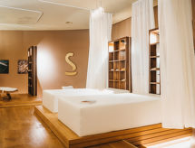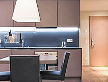 Barnvänligt, modernt, komfortabelt residens "Peaks Place Apartment-Hotel & Spa", byggnadsår 2015. Centralt, soligt läge, 500 m från skidområdet. För gemensamt bruk: inomhus pool. I huset: reception, restaurang, bar, sällskapsrum, bastu, gym, massage (extra). Ångbad, spa-område, hiss, skidförråd, centralvärme. Städning möjligt (extra). Frukost möjligt (extra). Tillfart ända fram till till huset. Gemensamt garage. Stormarknad 750 m, restaurang 200 m, bageri 1.5 km, cykeluthyrning 20 m, busshållplats 100 m. Golfbana (18 hål) 5 km, minigolf 2.2 km, sportcentrum 2.2 km, vandringsleder från huset 100 m, linbana, skidlift, kabinlift, skidsportanläggningar, skidbackar, skiduthyrning 500 m, skidbusshållplats 100 m, skidskola, barnskidskola, kälkbana 500 m, skidspår 1 km, isbana 1 km, lekplats 500 m. Närbelägna sevärdheter: Bikerouten (330 km rund um Laax) 500 m, Klettersteig Pinut 6.1 km, Rheinschlucht 15.8 km. Välkända skiddestinationer nås enkelt: Weisse Arena Flims / Laax 500 m. Välkända sjöar nås enkelt: Laaxersee 1.8 km, Caumasee 3.3 km, Crestasee 6.2 km. Vandringsområden Planetenlehrpfad Falera-Laax-Falera 1.2 km, 659 Senda Ruinaulta 2.2 km, Bergwanderroute Unterer Segnesboden 7.6 km.Interior