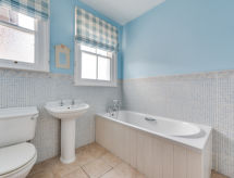 6-rums-hus med 2 våningar. Komfortabelt och vackert inrett: vardagsrum med öppen spis, flatscreen TV och DVD. Matrum med öppen spis och TV. Kök (4 kokplattor, ugn, diskmaskin, mikrovågsugn, frys). Dusch/toalett. Övre våning: 1 rum med 1 fransk säng och TV. 1 rum med 1 fransk säng och öppen spis. 1 rum med 3 sängar och TV. 1 rum med 1 säng. Badkar/dusch/toalett. Gasuppvärmning. Trädgårdssittplats. Terrassmöbler. Till förfogande: tvättmaskin, torktumlare. Notera: rökfritt hus.- Utrustning