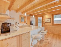 Vackert chalet "Penguin Hill", med 2 våningar, byggnadsår 2019. Ovanför Saint-Gervais les Bains, avskilt, lugnt läge i en sluttning. För privat bruk: tomt 1'900 m2. Terrass. I huset: skidförråd. Brant tillfart. Vänligen använd snökedjor under vintern. Parkering vid huset, på vintern 130 m. Livsmedelsaffär 1.8 km, restaurang 1.7 km, bageri 1.9 km, …minuts promenad till centrum 20, busshållplats "Le Pont" 1.8 km, simhall 2.9 km, bad med varma källor "Les Thermes de Saint-gervais" 6.6 km. Tennis 2.9 km, minigolf 2.9 km, bergbana 2.2 km, kabinlift 2.6 km, skidbusshållplats 1.5 km, isbana 2.5 km. Välkända skiddestinationer nås enkelt: Evasion Mont Blanc 2.6 km. Notera: fordon rekommenderas.Interior