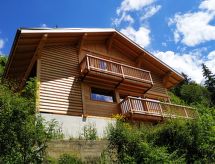 3-rums-chalet 110 m2 med 2 våningar. Rymlig, mycket komfortabelt och modernt inrett: stort vardags-/matrum med öppen spis. Utgång till trädgården, till balkongen. Ingång med sep. toalett. Stort, öppet kök (ugn, diskmaskin, 4 Induktionshäll, brödrost, vattenkokare, frys, elektrisk kaffemaskin, Kapslar till kaffemaskin (L'Or) extra, kombinerad mikrovågsugn). Utgång till trädgården, till terrassen. Övre våning: 1 stort rum med 1 fransk säng (180 cm, längd 200 cm), badkar/dusch/toalett. Utgång till balkongen, mot väst. 1 rum med 1 fransk säng (180 cm, längd 200 cm), dusch/toalett och eluppvärmning. Golvvärme. Terrass, sydvästläge och västläge, stor trädgård. Terrassmöbler, utegrill, vilstolar. Mycket vacker utsikt på bergen. Till förfogande: tvättmaskin. Internet (Trådlös LAN [WLAN] , gratis). Parkeringsplats. Notera: rökfritt hus. 1 husdjur/hund tillåtet. Brandvarnare.- Kännetecken för boendet
