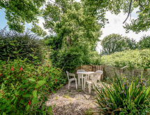 6-rums-lägenhet med 2 våningar på 1. våningen. Komfortabelt och modernt inredd: 1 dubbelrum med 1 fransk säng och badkar/toalett. 1 rum med 2 sängar. 1 barnrum med 2 sängar. Dusch/toalett. Övre våning: vardags-/matrum med kabel-TV, radio, CD och DVD. 1 rum med 1 dubbelsäng. Vardags-/matrum med köksblock. Kök (4 kokplattor, ugn, diskmaskin, mikrovågsugn, frys). Sep. Toalett. Eluppvärmning. Trädgårdssittplats, trädgård. Terrassmöbler, utegrill. Utsikt på havet och landskapet. Till förfogande: tvättmaskin, torktumlare, barnsäng för barn under 3 år. Internet (Trådlös LAN [WLAN] , gratis). Parkeringsplats nr 1 vid huset. Notera: rökfritt hus.- Kännetecken för boendet
