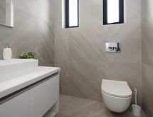 1 guest toilet. 1 bathroom with toilet and shower room. 1 en-suite bathroom with toilet and shower room. All bathrooms have with washing basins.- Kännetecken för boendet