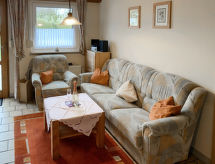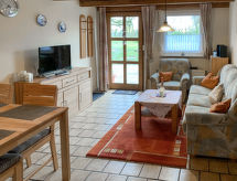 3-rums-lägenhet 50 m2, på bottenvåningen. Mysigt och med mycket trä inredd: vardags-/matrum med sat-TV (flatscreen TV), radio. Utgång till terrassen. 1 rum med 1 dubbelsäng (2 x 90 cm, längd 200 cm). 1 rum med 2 sängar (90 cm, längd 200 cm). Kokvrå (ugn, diskmaskin, 4 kokplattor - glaskeramikhäll, brödrost, vattenkokare, mikrovågsugn, elektrisk kaffemaskin). Dusch/toalett. Terrassmöbler, utegrill (flyttbar). Till förfogande: Internet (Trådlös LAN [WLAN] , gratis). Notera: rökfri lägenhet. Brandvarnare.- Utrustning