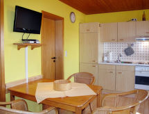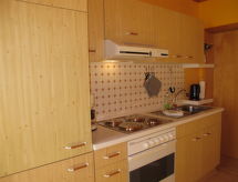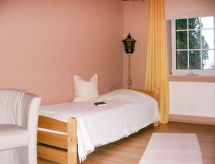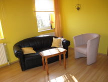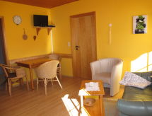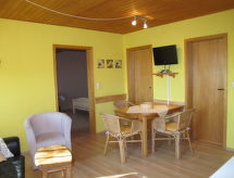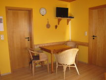 2-rums-lägenhet 55 m2, på bottenvåningen. Ljus, mysigt inredd: vardags-/matrum med sat-TV, radio och DVD. 1 rum med 1 säng och 1 dubbelsäng. Öppet kök (4 kokplattor, ugn, brödrost, vattenkokare, elektrisk kaffemaskin). Dusch/toalett. Förråd. Till förfogande: hög barnstol, barnsäng. Internet (Trådlös LAN [WLAN] , gratis). Notera: rökfri lägenhet. 1 husdjur/hund tillåtet. Brandvarnare, brandsläckare.- Utrustning