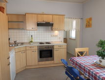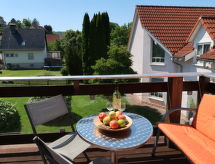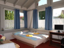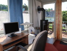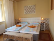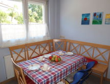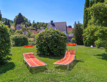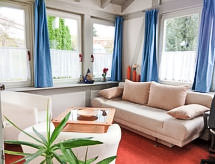 "Petra", 3-rums-lägenhet 100 m2, på bottenvåningen över marknivå. Smakfullt inredd: stort vardagsrum med vinterträdgård med braskamin, sat-TV, radio och DVD. Utgång till trädgården, till balkongen. 1 rum med 2 sängar (90 cm, längd 200 cm) (längd 200 cm). 1 dubbelrum. Kök (diskmaskin, mikrovågsugn, elektrisk kaffemaskin) med matvrå. Dusch/toalett. Till förfogande: hög barnstol, ved (extra). Parkeringsplats vid huset. Notera: rökfri lägenhet.- Utrustning