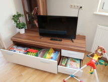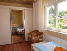 Mysigt 2-familjshus. I utkanten, 200 m från centrumet av Nentershausen. För gemensamt bruk: tomt, välskött trädgård 1'500 m2, damm. Trädgårdsmöbler, utegrill, barnlekplats (gunga, sandlåda). I huset: centralvärme, tvättmaskin, torktumlare (för gemensamt bruk). Stormarknad, restaurang 200 m, busshållplats 100 m, järnvägsstation "Bebra" 14 km, utomhusbad 300 m, simhall 15 km. Golfbana 30 km, tennis 2 km. Notera: fordon rekommenderas. Objektnummer DE6446.100.1 är beläget på samma tomt.Interior