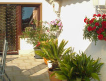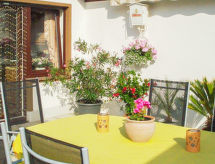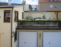 1-rums-takvåning 35 m2 på 1. våningen. Komfortabelt och mysigt inredd: vardags-/sovrum med 1 dubbelsäng och kabel-TV (flatscreen TV). Kök (ugn, diskmaskin, 4 kokplattor - glaskeramikhäll, vattenkokare, mikrovågsugn, elektrisk kaffemaskin) med matbord och radio. Utgång till terrassen. Dusch/toalett. Uppvärmning. Stor terrass 25 m2. Terrassmöbler, utegrill (flyttbar), vilstolar (2). Till förfogande: hög barnstol. Internet (Trådlös LAN [WLAN] , gratis). Notera: rökfri lägenhet. Brandvarnare.- Utrustning