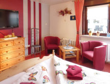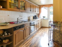 Frankenhain 5 km från Geschwenda: 2-familjshus "Petra". I orten 500 m från centrumet av Frankenhain, lugnt läge, 300 m från skogsbrynet. Parkering vid huset. Affär, livsmedelsaffär 300 m, stormarknad 3 km, köpcentrum 3 km, restaurang 300 m, busshållplats 200 m, järnvägsstation "Gräfenroda" 3 km, utomhusbad 15 km, simhall 15 km, badsjö 5 km. Golfbana (18 hål) 26 km, skidlift 15 km, stollift 15 km, skidsportanläggningar 15 km, skidbackar 15 km, skiduthyrning 15 km, skidskola 15 km, skidspår 500 m. Välkända skiddestinationer nås enkelt: Oberhof 15 km. Välkända sjöar nås enkelt: Talsperre Lütsche 5 km, Talsperre Ohra 13 km.Interior