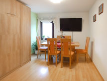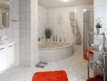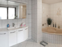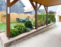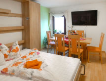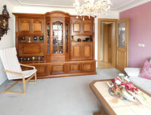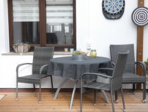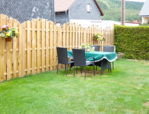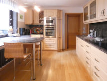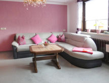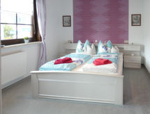 3-rums-lägenhet 85 m2, på bottenvåningen. Mysigt och med mycket trä inredd: vardags-/sovrum med 1 bäddsoffa och kabel-TV (flatscreen TV). 1 rum med 1 dubbelskåpsäng (140 cm, längd 200 cm), matbord och kabel-TV (flatscreen TV). 1 rum med 1 dubbelsäng (160 cm, längd 200 cm). Öppet kök (ugn, diskmaskin, 4 Induktionshäll, vattenkokare, mikrovågsugn) med bar, matbord. Badkar/dusch/toalett med hörnbadkar. Uppvärmning. Parkettgolv, heltäckningsmatta. Terrass 15 m2 täckt, stor trädgårdssittplats 30 m2. Terrassmöbler, utegrill (flyttbar). Till förfogande: hög barnstol, barnsäng, hårtork. Internet (Trådlös LAN [WLAN] , gratis). Notera: rökfri lägenhet. Privat entré, privat entré, brandvarnare.- Kännetecken för boendet