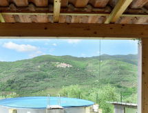 Litet, vackert residens "Clara", byggnadsår 2014, omgiven av träd och vingårdar. 4 lägenheter i residenset. I den lilla byn Canneto 3 km från centrumet av Prelà, 5 km från centrumet av Dolcedo, 12 km från centrumet av Imperia, avskilt läge i en sluttning, 15 km från havet, i det gröna. För gemensamt bruk: tomt i naturtillstånd 1'200 m2 med träd, pool (uppställbar bassäng) oregelbundet formad (8 x 4 m, 120 cm djup, tillgång säsongsbunden: 01.Jan. - 31.Dec.). Utedusch. I huset: cykelförråd. 50 m lång brant, smal tillfart ända fram till till huset (ramp). Parkering (begränsat antal) vid huset. Affär 3 km, stormarknad 12 km, restaurang 3 km, bar 3 km, bageri 3 km, café 3 km, järnvägsstation "Porto Maurizio" 15 km, sandstrand "Imperia - Porto Maurizio" 15 km. Ägaren accepterar inga ungdomsgrupper.Interior