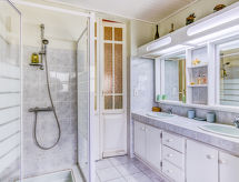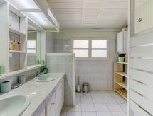 4-rums-hus 70 m2. Enkelt inrett: matrum med TV och internationella TV-kanaler (flatscreen TV). Utgång till trädgården. Genomgångsrum med 1 fransk säng (1 x 140 cm, längd 190 cm). 1 rum med 2 sängar (90 cm, längd 190 cm). 1 rum med 1 fransk säng (1 x 140 cm, längd 190 cm). Öppet kök (3 kokplattor, ugn, diskmaskin, mikrovågsugn, frys). Badkar, dusch/toalett, dubbelt handfat. Terrassmöbler, utegrill. Till förfogande: tvättmaskin, strykjärn. Internet (Trådlös LAN [WLAN] , extra). Parkeringsplats (inhägnad, 2 Bilar). Notera: rökfritt hus. Max 1 husdjur/hund tillåtet. Brandvarnare.- Kännetecken för boendet