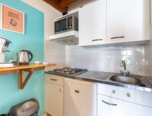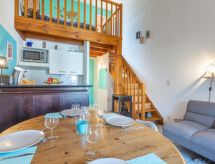 Capbreton 2 km från Hossegor: Radhus "Plage sud". 100 m från havet, 6 km från sjön. För gemensamt bruk: pool (10 x 8 m, 90 - 200 cm djup, tillgång säsongsbunden: 15.Jun. - 15.Sep.). Parkering. Livsmedelsaffär, restaurang 800 m, sandstrand "La Savane" 100 m. Golfbana (18 hål) 5 km.Interior