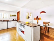 "Platja", 5-rums-hus 140 m2. Rymlig och ljus, praktiskt och komfortabelt inrett: vardags-/matrum med digital-TV. Utgång till terrassen, mot söder och mot väst. 1 dubbelrum med 1 fransk säng (160 cm, längd 200 cm). 1 dubbelrum med 1 fransk säng (160 cm, längd 200 cm). 1 rum med 2 x 2 våningssängar. 1 dubbelrum med 2 sängar (90 cm, längd 190 cm). Stort kök (5 kokplattor, ugn, diskmaskin, brödrost, vattenkokare, mikrovågsugn, frys, elektrisk kaffemaskin) med matbord. 2 badkar/toaletter. Ingen uppvärmningsmöjlighet. Stor terrass. Terrassmöbler, utegrill, vilstolar. Panoramautsikt på havet. Till förfogande: tvättmaskin, strykjärn, hög barnstol, barnsäng för barn under 2 år, hårtork. Internet (Trådlös LAN [WLAN] , gratis). Notera: lämpligt för barnfamiljer. TV bara ES. HUTG015295- Utrustning