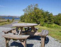 "Ploughman's Cottage", 4-rums-stuga på bottenvåningen. Modernt och smakfullt: ingång. Öppet vardags-/matrum med matbord, TV och sat-TV (flatscreen TV), radio, CD, DVD och vedugn. 1 dubbelrum med 1 dubbelsäng. 2 dubbelrum, till varje rum hör 2 sängar. Öppet kök (4 kokplattor, ugn, diskmaskin, mikrovågsugn, frys) med matbord. Sep. Toalett, badkar/dusch/toalett. Uppvärmning. Liten terrass, trädgård. Terrassmöbler. Mycket vacker utsikt på sjön och landskapet. Till förfogande: tvättmaskin, torktumlare, hög barnstol, barnsäng för barn under 2 år, hårtork. Internet (Trådlös LAN [WLAN] , gratis). Parkeringsplats (2 Bilar) vid huset. Notera: lämpligt för barnfamiljer. Rökfritt hus. 1 husdjur/hund tillåtet. TV bara EN.- Kännetecken för boendet