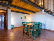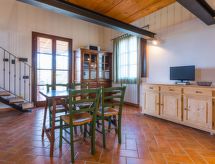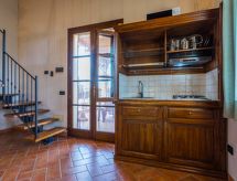 Vackert residens "Podere Tre Termini", omgiven av fält och vingårdar. 12 lägenheter i residenset. 5 km från centrumet av Cecina, 7 km från centrumet av Bibbona, 5 km från havet. För gemensamt bruk: tomt, välskött trädgård gräsmatta och träd, pool (14 x 7 m, tillgång säsongsbunden: 15.Maj. - 15.Okt.). Utedusch. I huset: tvättmaskin (för gemensamt bruk, extra). Parkering (täckt). Stormarknad 4 km, köpcentrum 4 km, restaurang 3.5 km, sandstrand "Marina di Cecina" 5 km, bad med varma källor "Calidario" 34 km. Närbelägna sevärdheter: Bolgheri 11 km, Livorno 45 km, Pisa 65 km. Bilden är bara ett exempel på en lägenhet.Interior