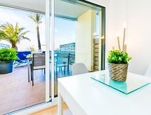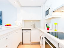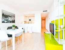 Modern, vacker, komfortabel stugby "PORT GRAN". I ortsdelen Santa Margarita 3.5 km från centrumet av Roses, lugnt, soligt läge, område med lite trafik, 1.5 km från havet. För gemensamt bruk: vacker, välskött trädgård med gräsmatta och träd, pool (22 x 10 m, 100 - 140 cm djup, tillgång säsongsbunden: 01.Apr. - 30.Okt.). Bubbelbad, bordtennis, terrass, barnlekplats (gunga, sandlåda), innergård med planteringar. I anläggningen: reception, Trådlös LAN [WLAN] (extra). Hiss. Stormarknad 300 m, köpcentrum 1.5 km, restaurang 500 m, bar 300 m, busshållplats 1 km, sandstrand "Santa Margarita" 1.5 km, badvik 5 km. Sporthamn 3 km, golfbana (18 hål) 15 km, tennis 2 km, minigolf 1.5 km. Närbelägna sevärdheter: Parque Acuático Aquabrava Roses 1.9 km, Skydive y túnel del viento Empuriabrava 6 km, Museo Dalí Figueres 19 km, Monasterio de Sant Pere de Rodes 20 km, Castillo y casino de Perelada 20 km, Cadaqués 16 km. Tonårsgrupper endast på förfrågan. Lugnt och tyst område. Tystnad och gott uppförande förväntas.Interior