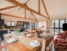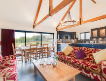 4-rums-hus. Objekt passande för 6 vuxna + 1 barn. Rymlig och ljus, komfortabelt och smakfullt inrett: öppet vardags-/matrum med TV, flatscreen TV, CD och DVD. 1 dubbelrum med 1 dubbelsäng. 1 rum med 2 sängar och 1 utdragbar säng. 1 dubbelrum med 1 dubbelsäng, dusch/toalett och TV (flatscreen TV), DVD. Öppet kök (4 kokplattor, ugn, mikrovågsugn, frys) med TV och CD. Badkar/dusch/toalett. Uppvärmning. Terrassmöbler. Vacker utsikt på landskapet. Till förfogande: tvättmaskin, torktumlare. Internet (Trådlös LAN [WLAN] , gratis). Blu-ray-spelare, iPod-dockningsstation. Notera: rökfritt hus.- Utrustning