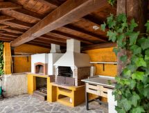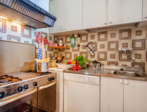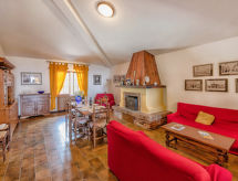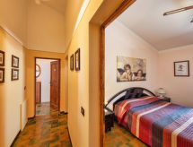 "Appartamento 1", 4-rums-lägenhet 100 m2 på 1. våningen. Komfortabelt och mysigt inredd: stort vardags-/matrum med öppen spis och TV (flatscreen TV). Utgång till trädgården, till loggian. 2 dubbelrum, till varje rum hör, fläkt. 1 rum med 2 sängar. Öppet kök (4 kokplattor, ugn, diskmaskin, frys). Dusch/bidé/toalett. Oljeuppvärmning (extra). Terrassmöbler. Mycket vacker utsikt på bergen och dalen. Till förfogande: hårtork. Internet (Trådlös LAN [WLAN] ). 1 husdjur/hund tillåtet.- Utrustning