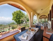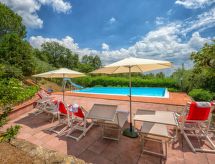 Mysig, komfortabel villa "Querceto", 500 meter över havsytan, fristående, omgiven av träd. 5.5 km från centrumet av Loro Ciuffenna, 35 km från centrumet av Arezzo, soligt, upphöjt läge, i det gröna. För gemensamt bruk: tomt 2 ha (inhägnad), trädgård i olika nivåer, pool (6 x 12 m, 140 cm djup, tillgång säsongsbunden: 01.Maj. - 30.Sep.). Utedusch, tennis, trädgårdsmöbler, utegrill. I huset: tvättmaskin (för gemensamt bruk), uppvärmning endast tillgängligt från 15.10. till 15.04.. Tillfart (3 km naturväg, bergsväg). Parkering vid huset. Stormarknad 5.6 km, restaurang 6 km, järnvägsstation "Montevarchi" 16 km, bad med varma källor "Rapolano" 50 km, badsjö "Trasimeno" 85 km. Närbelägna sevärdheter: Borro 16 km, Reggello 25 km, Gaiole In Chianti 35 km, Radda In Chianti 37 km, Firenze 55 km, Siena 66 km. Notera: fordon rekommenderas.Interior
