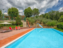 Mysig, komfortabel villa "Querceto", 500 meter över havsytan, fristående, omgiven av träd. 5.5 km från centrumet av Loro Ciuffenna, 35 km från centrumet av Arezzo, soligt, upphöjt läge, i det gröna. För gemensamt bruk: tomt 2 ha (inhägnad), trädgård i olika nivåer, pool (6 x 12 m, 140 cm djup, tillgång säsongsbunden: 01.Maj. - 30.Sep.). Utedusch, tennis, trädgårdsmöbler, utegrill. I huset: tvättmaskin (för gemensamt bruk), uppvärmning endast tillgängligt från 15.10. till 15.04.. Tillfart (3 km naturväg, bergsväg). Parkering vid huset. Stormarknad 5.6 km, restaurang 6 km, järnvägsstation "Montevarchi" 16 km, bad med varma källor "Rapolano" 50 km, badsjö "Trasimeno" 85 km. Närbelägna sevärdheter: Borro 16 km, Reggello 25 km, Gaiole In Chianti 35 km, Radda In Chianti 37 km, Firenze 55 km, Siena 66 km. Notera: fordon rekommenderas.Interior